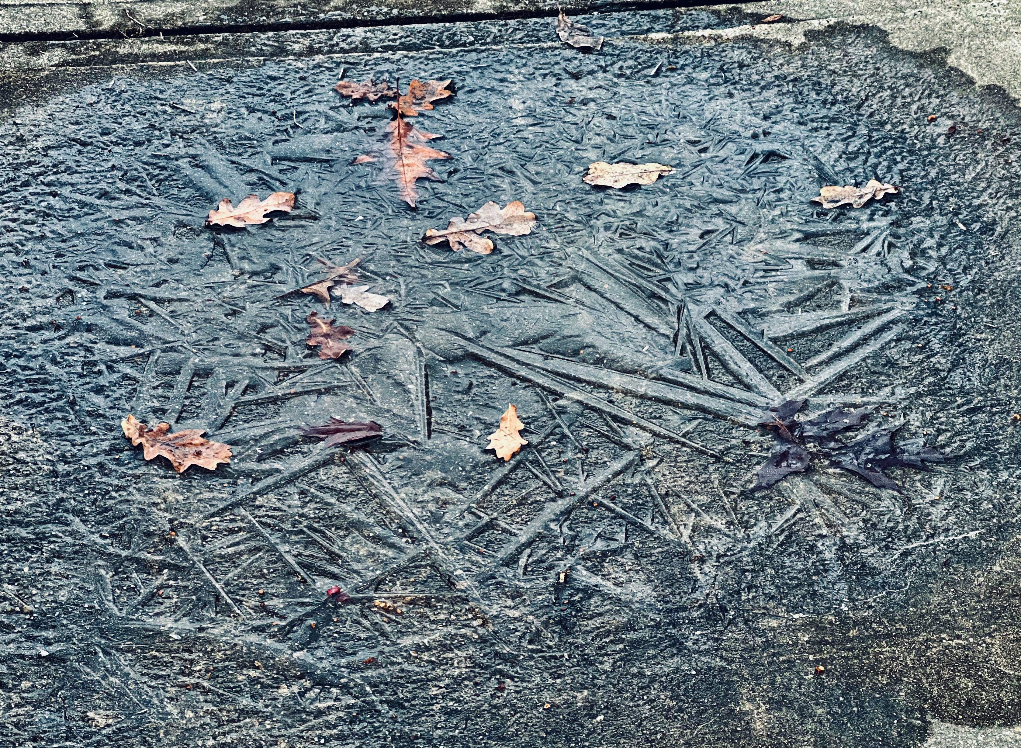 That happened earlier this week, when we walked around this patch of ice, and I noticed its latticed pattern.